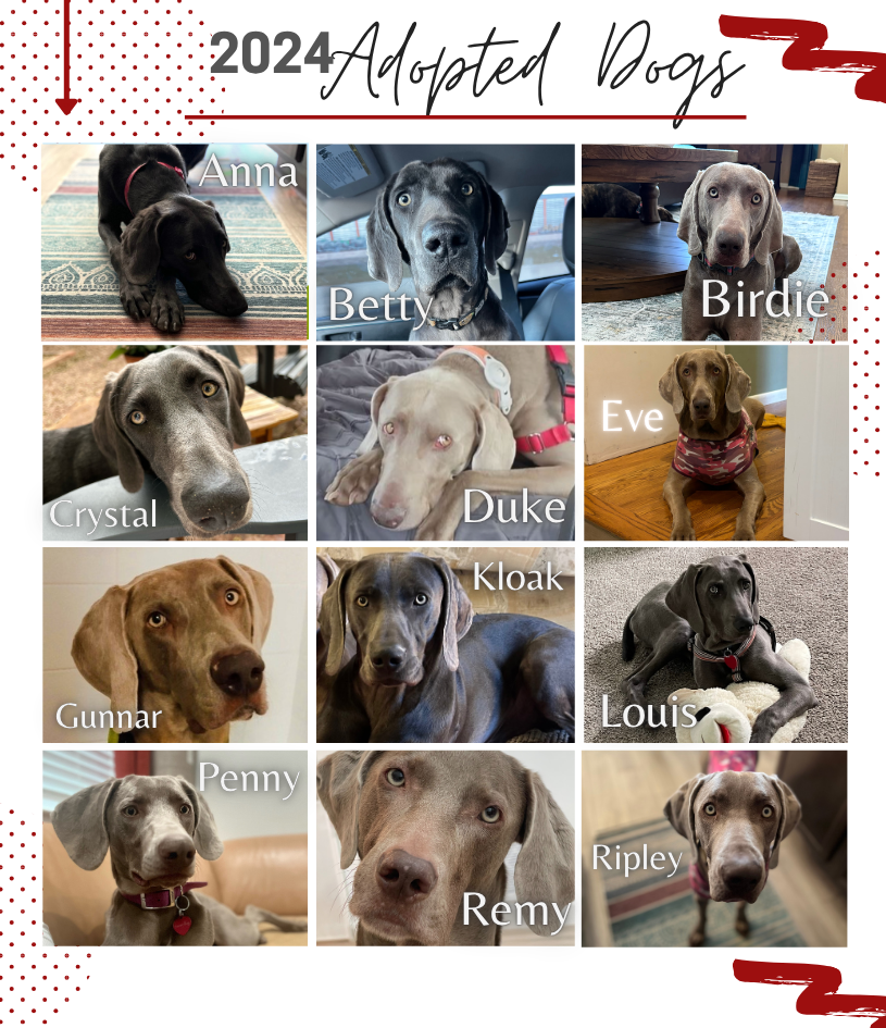 We have found that with the list of approved adopters that we have, a lot of our incoming dogs are going right into homes and are not making it to our website. We have decided to post a picture of the dogs adopted this year. These are just a few of the many dogs we get in, not pictures of every dog that we adopted over the years.